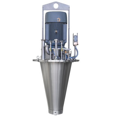 離心糖心APP官网进入工作時,料液送入高速離心糖心APP官网进入的進料管時,經一次或兩次料液分配後,迅速送到高速旋轉的霧化盤上,由於離心力的作用,使料液在旋轉的霧化盤表麵上伸展為薄膜,並以不斷增長的速度向盤的邊緣運動,當離開盤的邊緣時,料液即霧化,有滴狀,絲狀及膜狀分裂,以哪一種分裂為主則與糖心APP官网进入的轉速、進料量、料液性質及霧化盤的形狀、直徑等因素有關,而液滴大小主要取決於霧化盤的圓周速度。